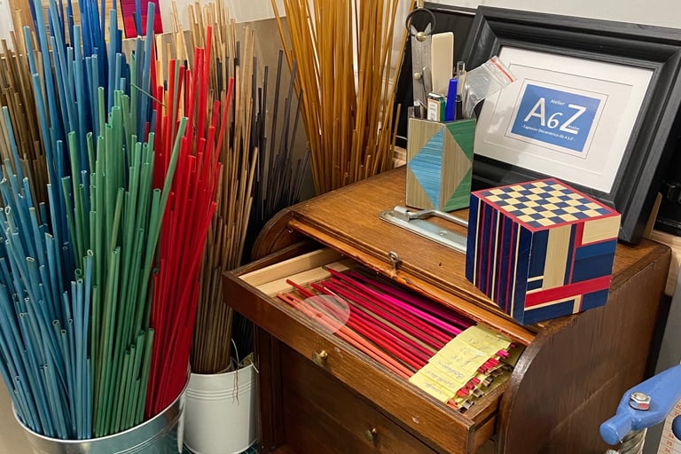 Issue du milieu médical, Karine Nourissat a gardé de ce domaine professionnel l'exigence et la rigueur. Rattrapée par l'envie de créer de ses mains et par le besoin de travailler les matières, Karine choisit de vivre une nouvelle aventure. D'une reconversion professionnelle encadrée par une formation diplômante exigeante est née l'ATELIER A6Z-Asssise. L'univers de l'ATELIER A6Z-Assise est un lieu artisanal mêlant créativité, savoir-faire et préservation du patrimoine dans un esprit éco-responsable. L'art s'exprime sous différentes formes : de la réfection traditionnelle de sièges anciens à la restauration contemporaine, mais aussi la création d'abat-jours, la confection de rideaux et de coussins , la création de banquette sur-mesure. Une formation à la marqueterie de paille vient compléter ces compétences.